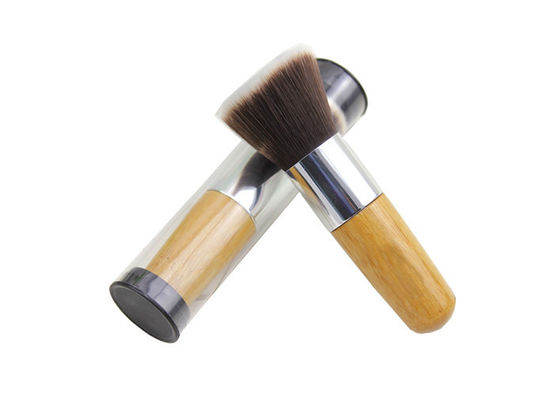Pequeño cepillo para la cara, cepillo plano del maquillaje del almacenador intermediario del almacenador intermediario de la manija de bambú de Kabuki